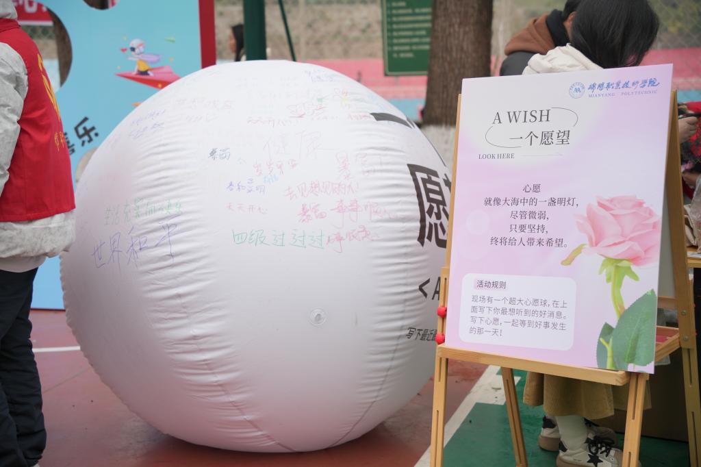 本次游园会设有7个主题,包括心理中心和二级学院心理辅导站设置的“许个愿望”“讨个彩头”“爱的抱抱”“心情树叶墙”“小狗集市”“烦恼全垒打”“口是心非”“携球共进”“扎破烦恼”“爱自己的100种方式”等15个活动项目,同学们领取定制的心旅护照后,进入园区体验丰富多样的心理活动项目,每参与完成一个项目后获得相应“奖章”,最后根据奖章的总数量换取对应礼品。本次活动将趣味性、互动性与教育性融为一体,全方位激发了学生多元智能的潜在能量,旨在通过形式多样的心理体验活动,为同学们提供一个释放压力、艺术创作的平台,激发对美好事物的感知力,促进心理健康成长。