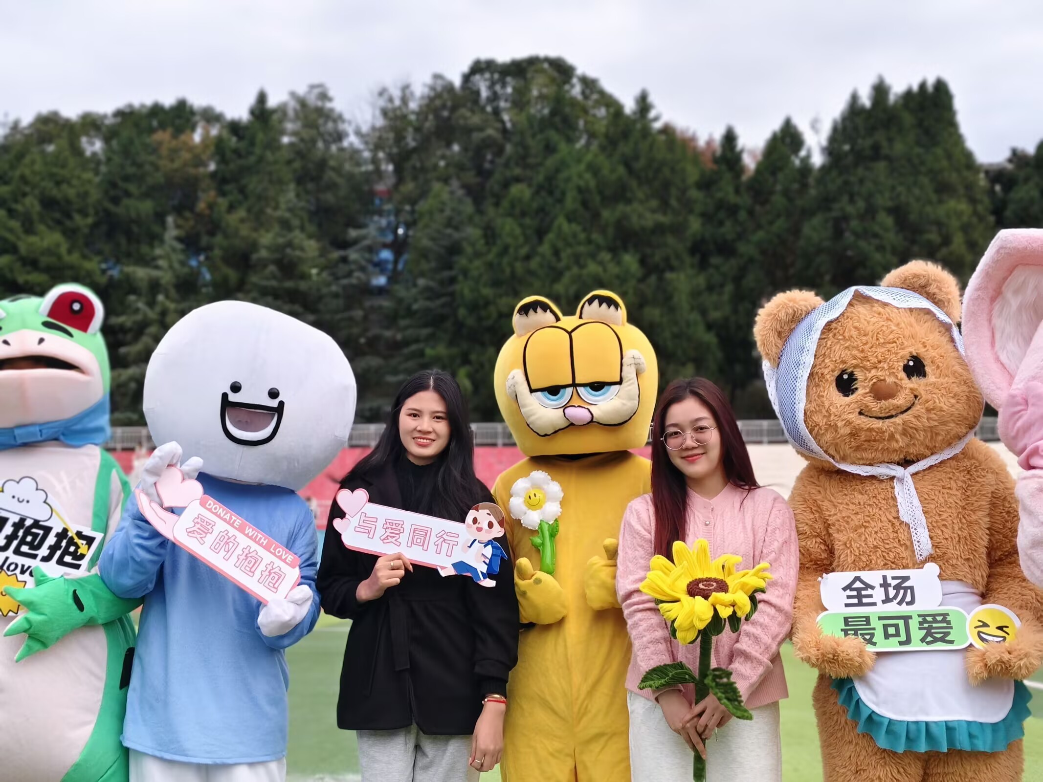 活动现场,志愿者们身着憨态可掬的玩偶服,化身“温暖使者”,主动向过往同学张开双臂。起初,不少同学带着些许羞涩,但在玩偶服的可爱氛围感染下,大家逐渐放下拘谨,纷纷走向“使者”,用一个简单的拥抱传递善意。无论是疲惫时的暖心慰藉,还是陌生人间的友好互动,每一次拥抱都伴随着笑容,成为冬日里最治愈的画面。