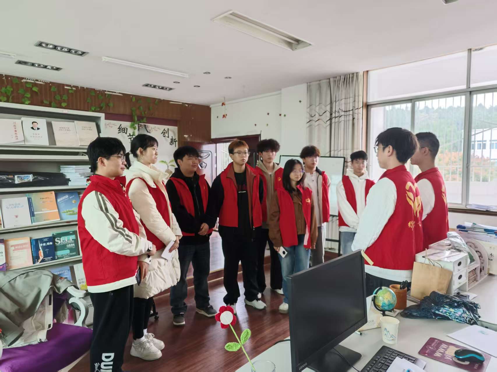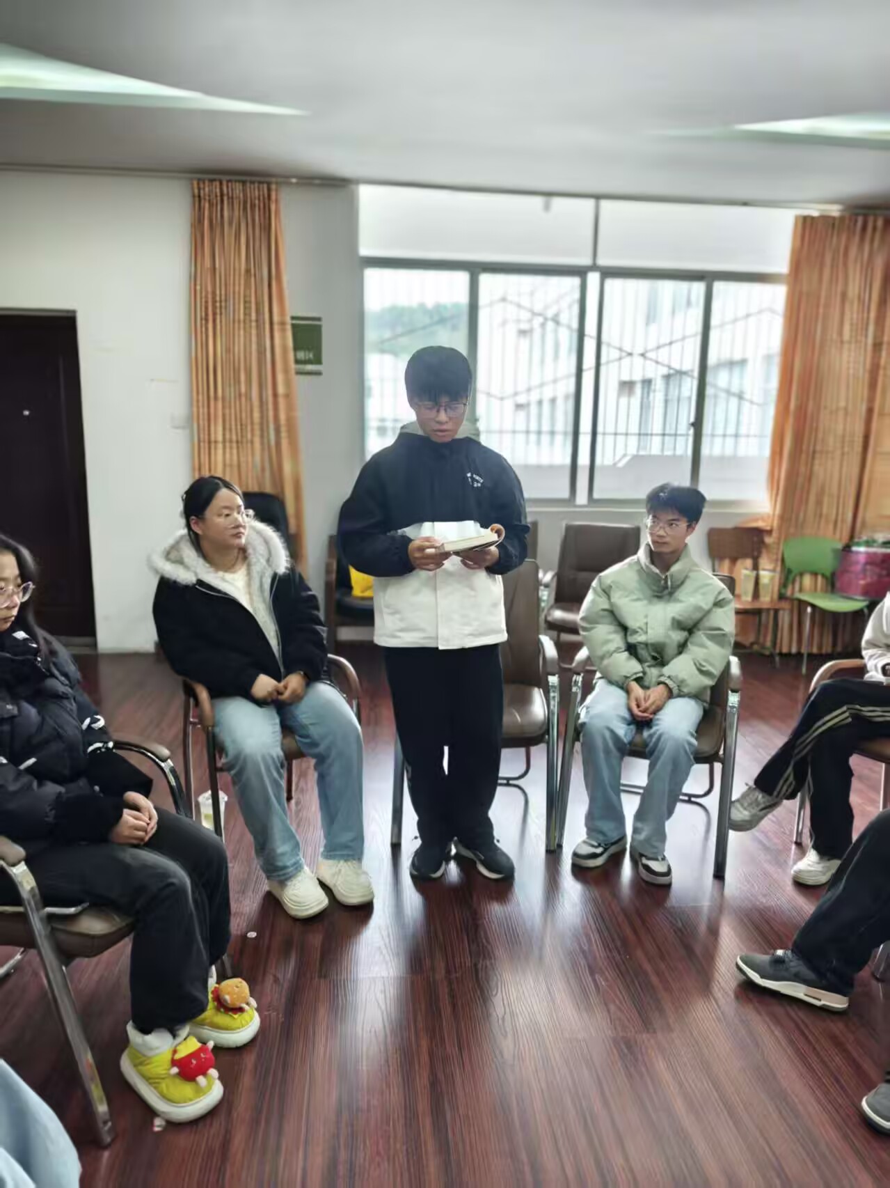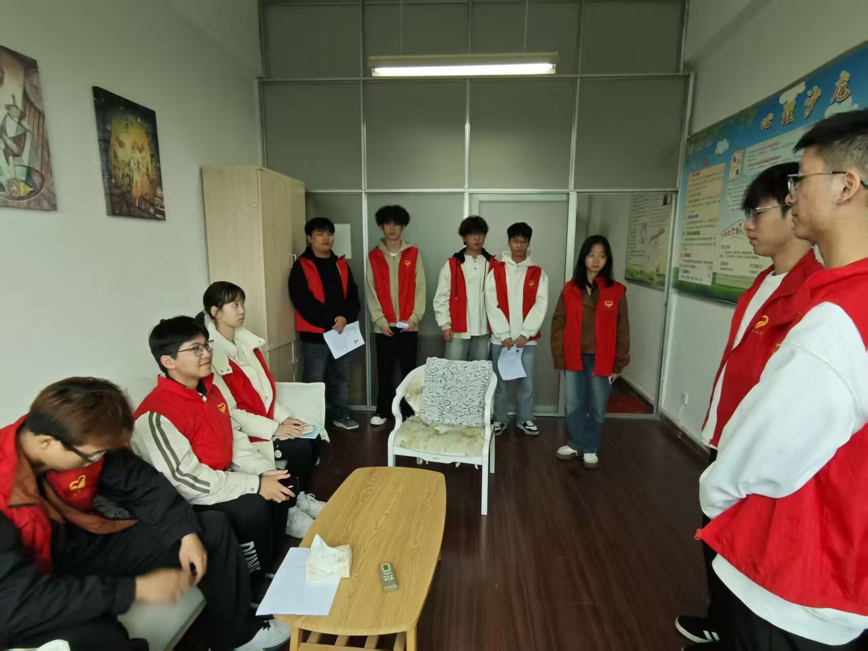 培训环节聚焦朋辈助理核心工作内容,王倩部长围绕“朋辈助理主要工作职责”“岗位服务规范”“心理服务中心环境维护要求”三大模块展开详细讲解,通过理论阐释与实际案例结合的方式,让拟聘任助理清晰掌握岗位工作要点。随后,王倩带领全体成员实地熟悉心理服务中心的功能区域划分与设施设备使用方法,确保未来服务过程中能高效响应同学需求。培训尾声,全体拟聘任助理依次进行自我介绍,分享加入朋辈心理服务队伍的初衷。