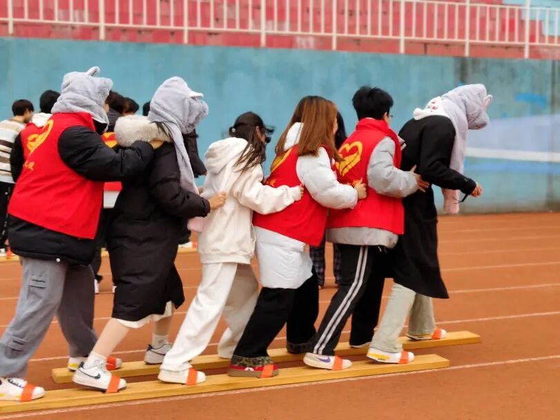 活动现场氛围轻松热烈,共设团体与单人两大项目。团体项目中,指压板跳绳考验忍耐力与配合度,拼七巧板比拼智慧与默契,接力球、跳大绳、五人十足则将团队协作尽显,各队伍你追我赶、互帮互助;单人项目同样精彩,蒙眼打人凭听觉和直觉带来未知欢乐,鱿鱼游戏唤起童年记忆,让参与者深度沉浸。同学们组成临时小队,从陌生到熟悉,在欢声笑语中打破隔阂、增进了解,游戏里相互配合、彼此鼓励,充分展现出心理工作者积极协作、乐观向上的精神风貌。