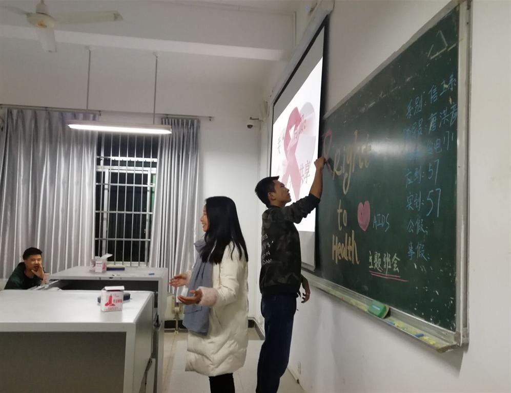 3日晚,全校大一大二各班在综合楼教室召开以“Right to Health”为主题的班会。有的班级由辅导员利用PPT和活动亲自讲解防艾知识,有的班级通过一系列的互动活动加深同学们对艾滋病的认识,不断提高防艾意识,有的班级通过有奖竞答提高同学们的积极型,帮助同学们了解到艾滋病相关知识。主题班会加大了艾滋病防治知识的宣传和普及广度。