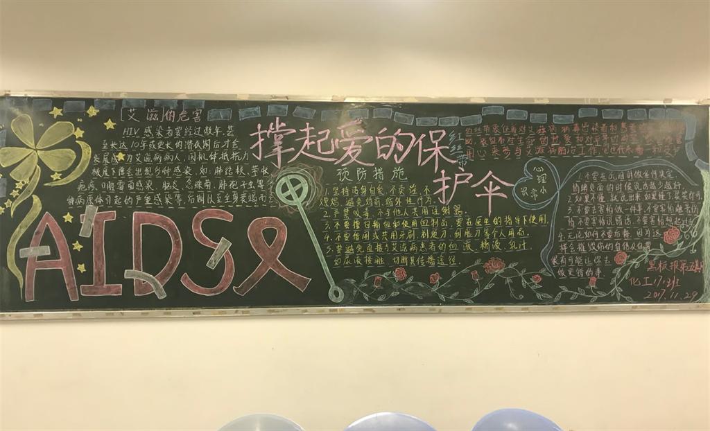 此外,大一各班还组织了“撑起爱的保护伞”主题黑板报展览;对各班进行了“青年学生艾滋病知识知晓率问卷调查”,活动前和活动后分别发放500份纸质问卷,并展开全校范围内的易班网络问卷调查。通过对调查数据的分析,发现同学们对艾滋病的了解和认识有了显著提高,正确率基本达到了市疾控中心提出的90%的要求。(文/图 龚勋 学通社王思 韦丹)