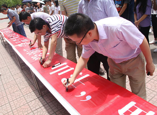 学工部副部长、学生处副处长王一博致辞。他讲到:学品学风建设在我校人才培养过程中具有举足轻重的作用,学生的精神面貌、思想品德、学习态度、行为规范无不成为学生成才的关键条件 ;好的学习氛围是推动学校内涵建设,提高办学质量水平、培养高素质人才的强大保证;好的学品学风,能增强学生的进取心和求知欲,培养学生的钻研精神、遵纪守法意识、文明行为习惯。辅导员和各级学生管理人员要正确分析,准确剖析本系本班存在的问题,自我画像,以建设月为契机,切实找准问题,针对典型现象,典型案例要一事一议,一事一策略、制定行之有效的问题解决方案,在全校形成团结互助、实事求是、互帮互学、勇于改正的学风氛围,促进学生全面发展。启动仪式中还举行了签名活动,相关学生社团组织进行了诗朗诵和魔术表演。