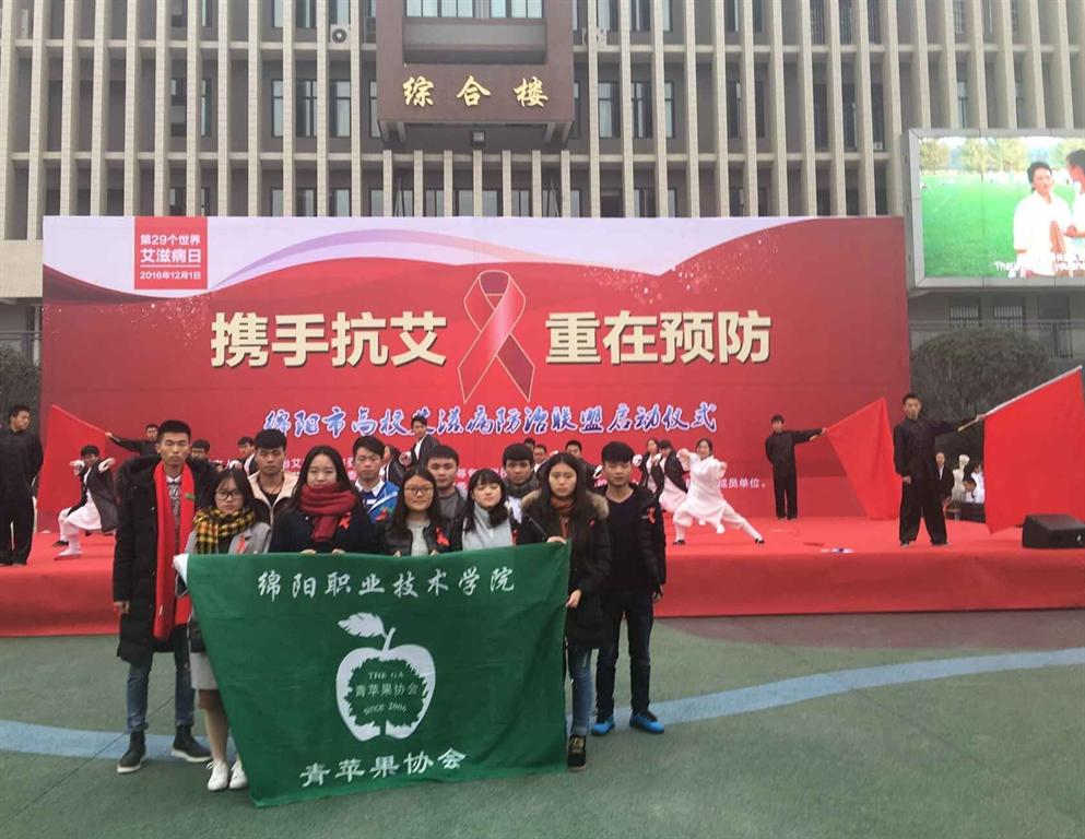 12月1日下午,在学工部心理健康教育与咨询中心主任叶芹的带领下,我校青苹果协会作为绵阳市“高校艾滋病防治联盟志愿者”赴四川中医药高等专科学校参加绵阳市疾控中心主办的“校园宣传活动暨绵阳市高校艾滋病防治联盟启动仪式”,在启动仪式中,我校艾滋病防治志愿者上台进行了签名,我校被授予“绵阳市高校艾滋病防治联盟成员学校”奖牌。