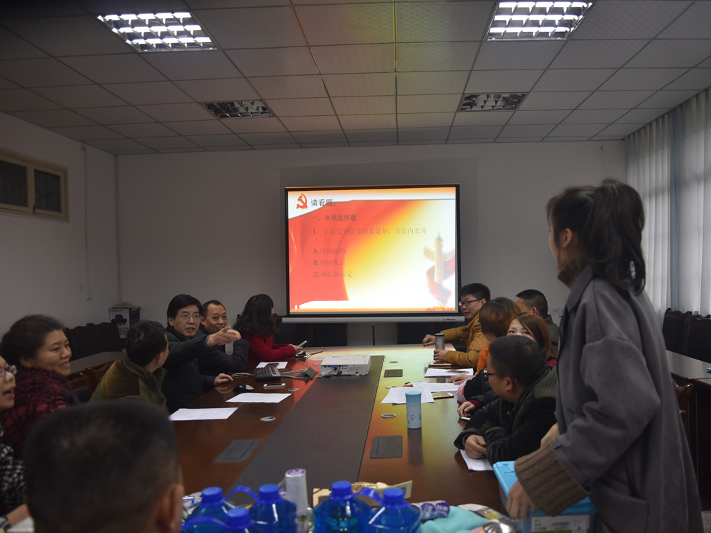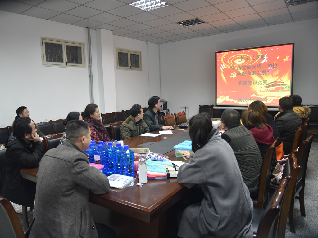 为增强机关三支部党组织的凝聚力和向心力,增强全体党员对党的感情,促进党员对党的十八大四中、五中全会精神的学习和理解,教育党员干部自觉践行“三严三实”,更好的服务于学院党政的各项中心工作,按照机关三支部2015年党建工作和党员主题教育活动计划安排,2016年1月6日下午,机关三支部组织所属各部门全体党员、领导干部、入党积极分子在实验楼306会议室举行了“沐浴党的光辉,加快学院和谐发展党建知识”竞赛活动。活动由支部书记豆祎主持。