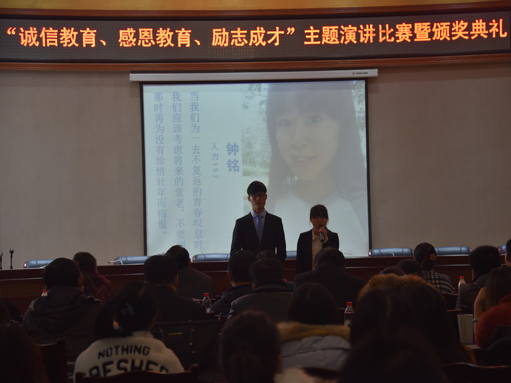 为培养大学生的自尊、自强、自信和自立意识,引导广大学生诚信于人,增强学生的责任意识和使命意识,推动我院诚信校风建设,促进大学生感恩教育深入发展,将大学生思想政治教育和资助育人工作真正落到实处。2016年1月7日下午,由学工部主办、建筑工程系承办的“诚信教育,感恩教育,励志成才”主题教育系列活动之一“谁的青春不奋斗”演讲比赛在学院行政楼一楼会议室举行,学院党委常委、副院长左明扬,学工部部长、学生处处长朱成友,团委书记、学工部副部长曹艳,学生处副处长豆祎,学生处副处长、公寓管理中心主任陈向东,学生处处长助理叶芹,各系分管学生工作领导,辅导员代表和学生代表参加了本次演讲活动。各系分管领导和团委陈玥君担任本次演讲比赛的评委。