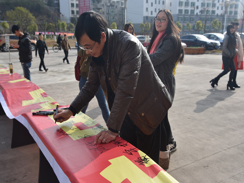 演讲比赛活动开始前,参加此次演讲比赛的院领导、学工部领导、各系分管领导、辅导员和学生在行政楼门前举行了“怀感恩的心,做诚信的人”主题签名活动。