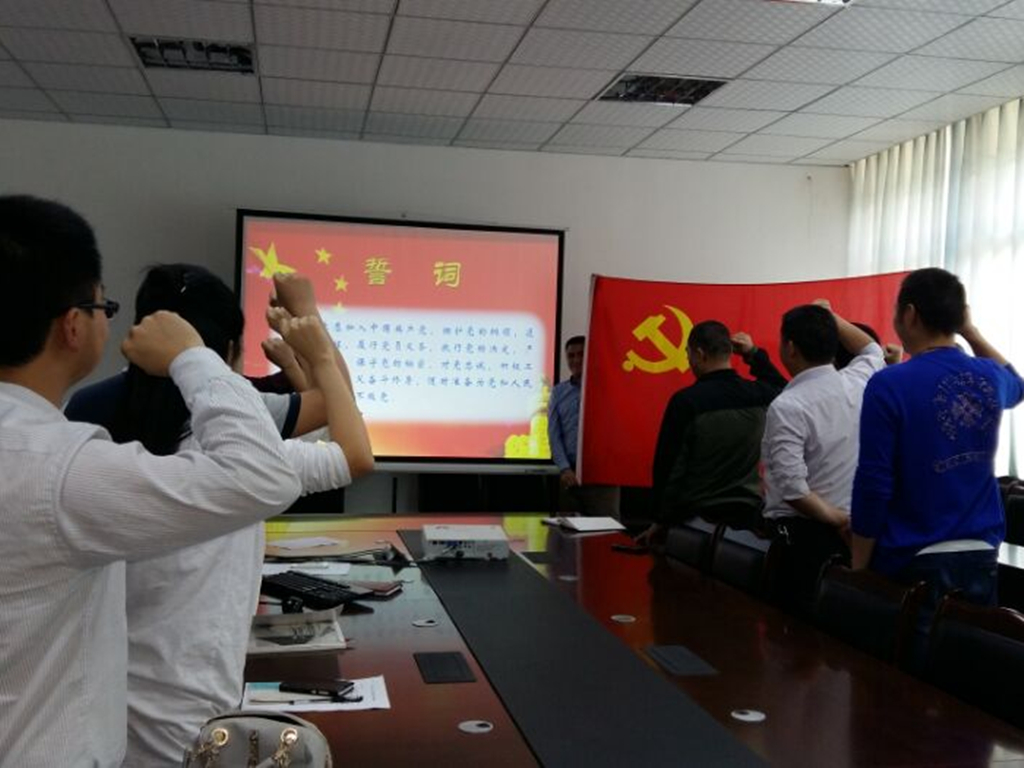 主题活动最后,由支部书记领誓,与会的党员干部庄严的举起了右手,面对鲜红的党旗重温了入党誓词,表达了为党的事业和学院各项事业的发展贡献力量的决心。