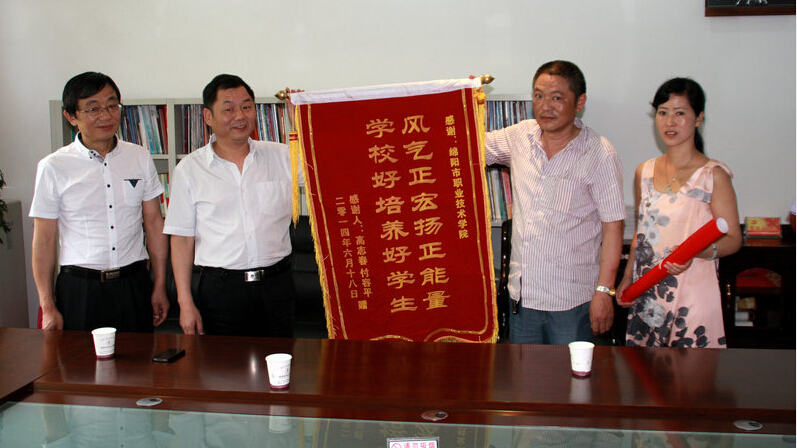 6月19日,我院学生家长付容平、高志春等一行从雅安远道驱车来院,向我院赠送了一面“风气正弘扬正能量•学校好培养好学生”锦旗,向建筑工程系送上了一封《感谢信》,并一再称谢,感谢我院、建工系和老师能培养出“临危不惧、见义勇为的学生”。