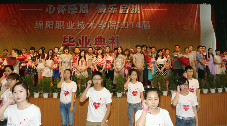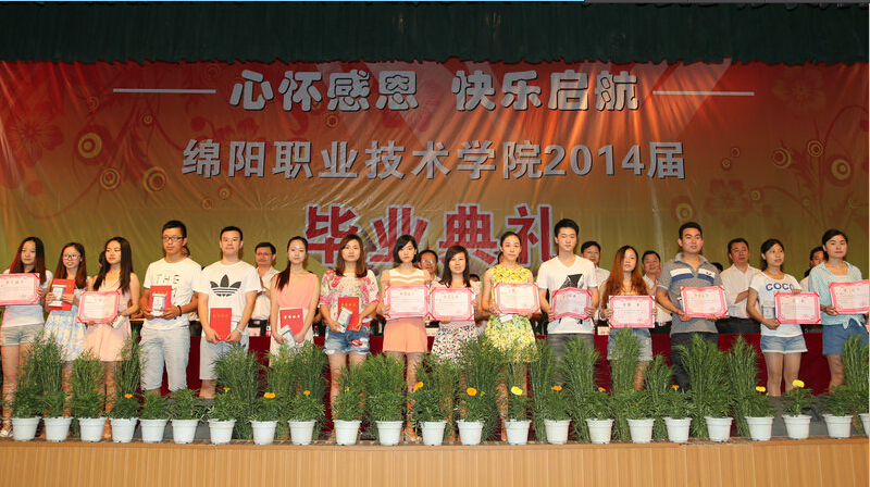 全体师生起立齐唱国歌后,典礼拉开序幕。何礼果首先向圆满完成学业的同学们表示最热烈的祝贺,并与在座毕业生们分享了三年来,在绵阳职业技术学院的种种难忘经历。何礼果向即将离开寂静校园奔赴喧嚣世界的学子们送上临别叮嘱,他讲道:人生中,各个阶段都会有不同的追求,要不停地思考“我是谁”,全面认识自身,正确定位。作为刚毕业的的大学生,在正确认识了眼下的“我是谁”后,就要思考“到哪去?”,要致力于将兴趣、能力和价值观三者高度融合,将个人追求、社会发展和国家需要有机统一,确定人生的方向。怎么去实现这些目标呢?何礼果强调,最重要的是路径选择正确,坚定信念、信心,并坚持走下去。