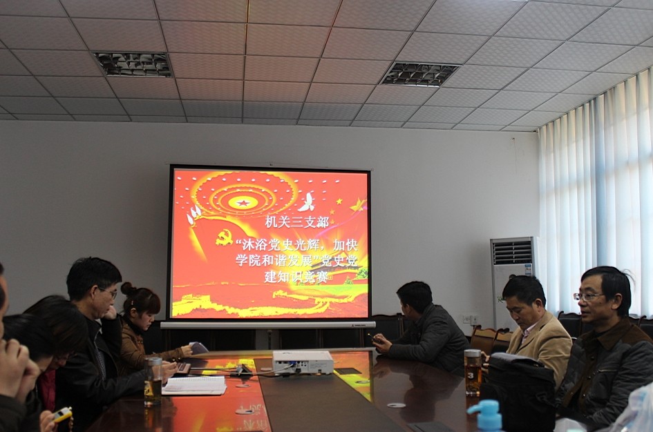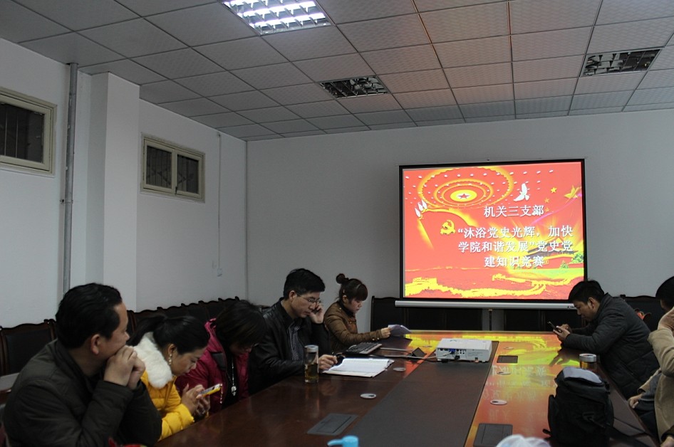 为了增强党组织的凝聚力和向心力,增强对党的感情,促进全体党员对党的十八届三中全会精神的学习和理解,更好的服务于学院的各项中心工作,按照机关三支部2013年党建工作和党员主题教育活动计划的安排,2013年12月12日下午,机关三支部组织所属各部门全体党员、入党积极分子在实验楼306会议室举行了“沐浴党史光辉,加快学院和谐发展”知识竞赛活动”。 机关三支部书记豆祎主持了此项活动。
