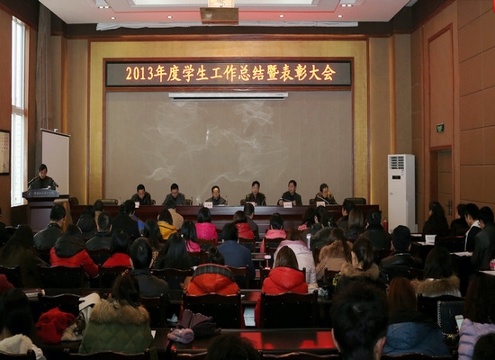 1月10日下午,学院在行政楼第一会议室召开2013年度学生工作总结暨表彰大会。党委书记文晓璋,党委常委、副院长钟志万,党委副书记、纪委书记王荣海,党委常委、副院长左明扬,党委委员、副院长沈利剑,工会主席蒋维益在主席台就座。相关职能部门领导、各系部学生工作负责人、学生工作部全体人员和全体辅导员参会。会议由左明扬主持。