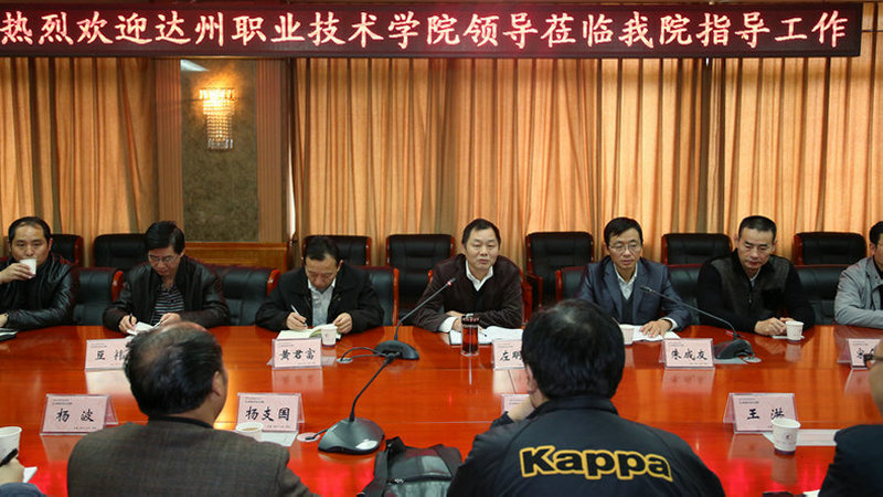 11月9日,达州职业技术学院汪洋率该院学生口各部门负责人来院考察学生管理工作。我院党委常委、副院长左明扬和各有关部门负责人在行政楼第二会议室为客人播放了我院宣传片,与客人座谈交流,并陪同客人参观了校园环境、学生公寓。
