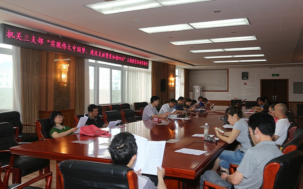2013年6月5日下午,机关三支部在行政楼第二会议室召开了机关三支部所属部门全体教职工大会,开展了“实现伟大中国梦,建设美丽繁荣和谐四川”主题教育活动宣讲报告会并进行了讨论。报告会由机关三支部书记豆祎主持,党委常委、副院长左名扬出席了宣讲报告会并参加了主题教育活动的讨论。左副院长在讨论发言中结合自己的工作、生活和切身体会,深入浅出的为大家诠释他对“中国梦”的理解,并要求,机关三支部所属部门教职工,在深入开展“实现伟大中国梦、建设美丽繁荣和谐四川”主题教育活动中,要紧密联系学院工作实际,立足各部门的本职工作,用“中国梦”统一大家的思想、凝聚共识,奋力推进我院各项事业科学发展、加快发展。