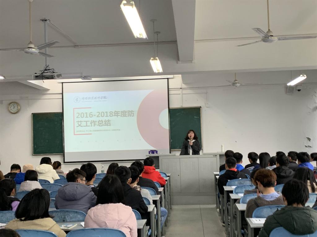 3月6日中午,校学生工作部心理健康教育与咨询中心在综合楼副楼教室召开以“知艾防艾,共享未来”为主题的2018年度防艾工作总结表彰会。会议由信息工程系青苹果协会承办,学工部心理健康教育与咨询中心龚勋和舒烨、信工系团总支书记杨淇、后勤医务室李圆媛,以及2018级各班代表参加此次会议。
