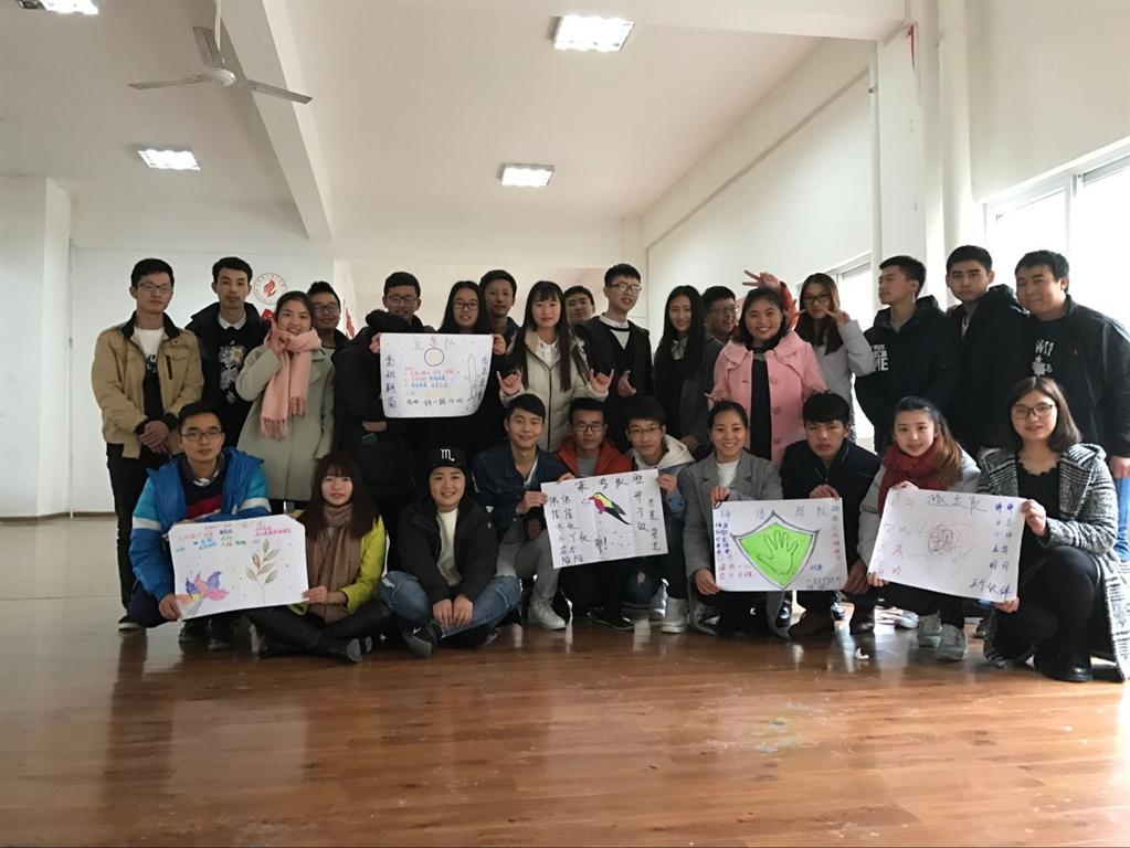 11月24日中午,第三次团辅活动在大学生活动中心进行,系团学和青苹果协会干部参加,此次活动的主题是“我们的团队”。陈立梅给同学们交代了活动目的后,团体成员按东西南北中分成5个组,设计各队的代表标志、口号、歌曲以及各组的规章制度。在“穿衣服接力”游戏中,同学们争先恐后齐心协力进行比赛。通过这一系列的团辅活动,信息工程系各班加强了彼此的联结与交流,增强了团体认同感和凝聚力,为以后的学习和工作奠定了良好的团体氛围。(陈立梅 供稿,龚勋编辑)