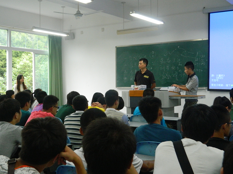 2013年9月1日晚,信息工程系辅导员组织2013级新生班级在多媒体教室召开了大学后首次班会。辅导员和班级分别是:王世军老师(智能131、智能132,通信131,通信132),盖丽老师(电信131、电信132),罗金生老师(生产自动化131、微电子131班),赵聃敏老师(电气131、电气132,电气133)。