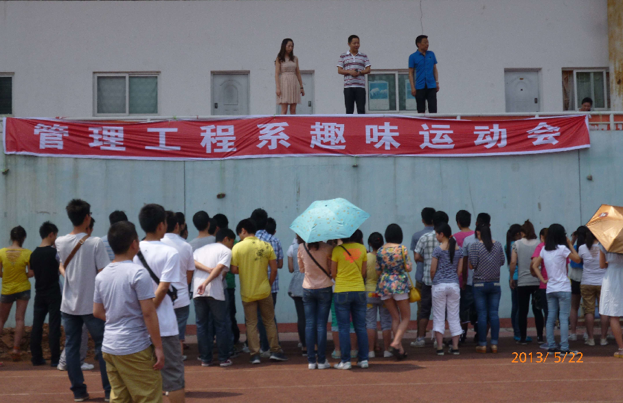 2013年5月22日下午14:00,管理系在足球场举办全院“趣味运动会”,副主任陈波致开幕辞。